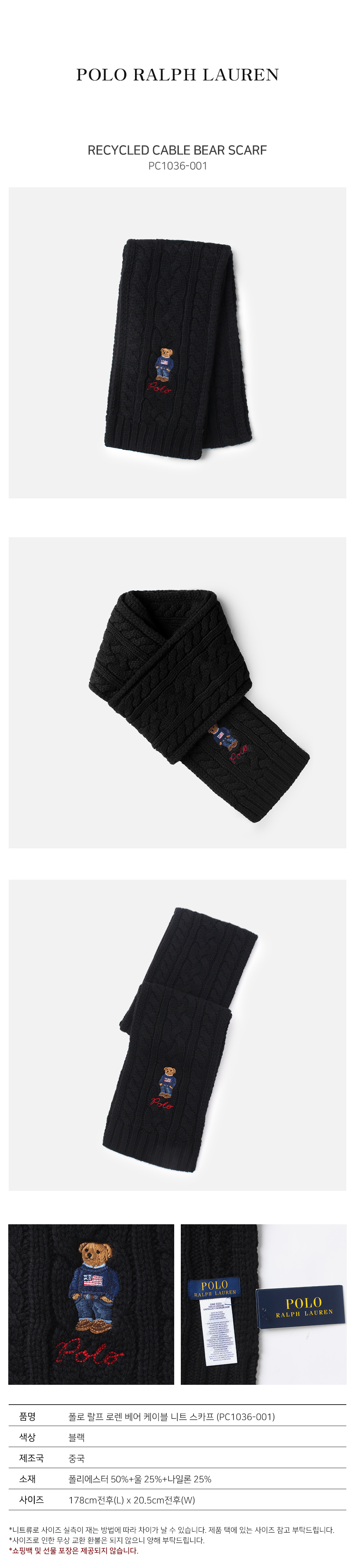 (현대Hmall)폴로 랄프 로렌 베어 케이블 니트스카프 (PC1036-001)