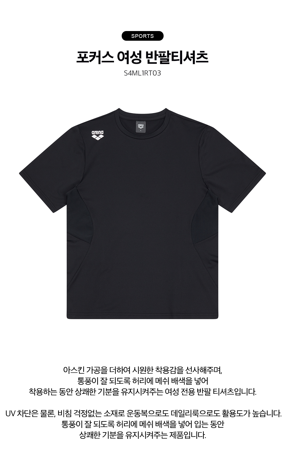 (현대Hmall)아레나공식 여성 포커스 반팔티셔츠 S4ML1RT03BLK