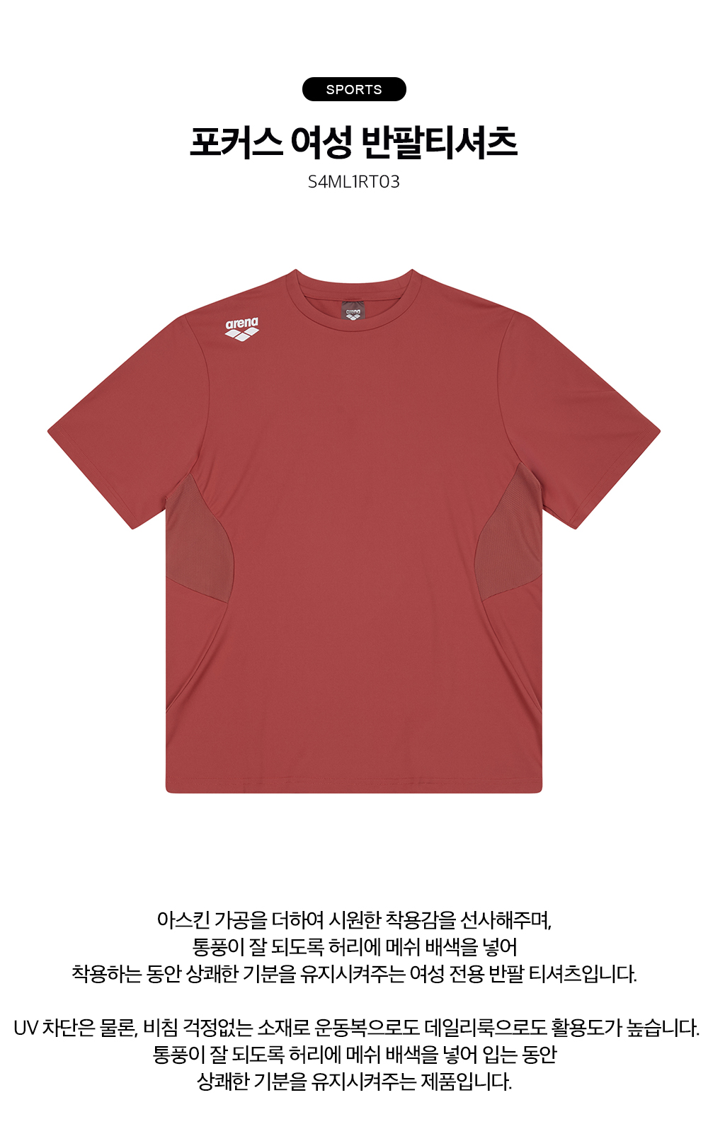 (현대Hmall)아레나공식 여성 포커스 반팔티셔츠 S4ML1RT03COR