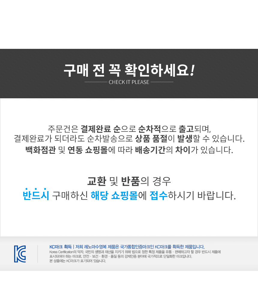 • 본 상품은 KC자율안전확인 대상품목으로 아래의 KC자율안전확인 을(를) 필하였습니다.