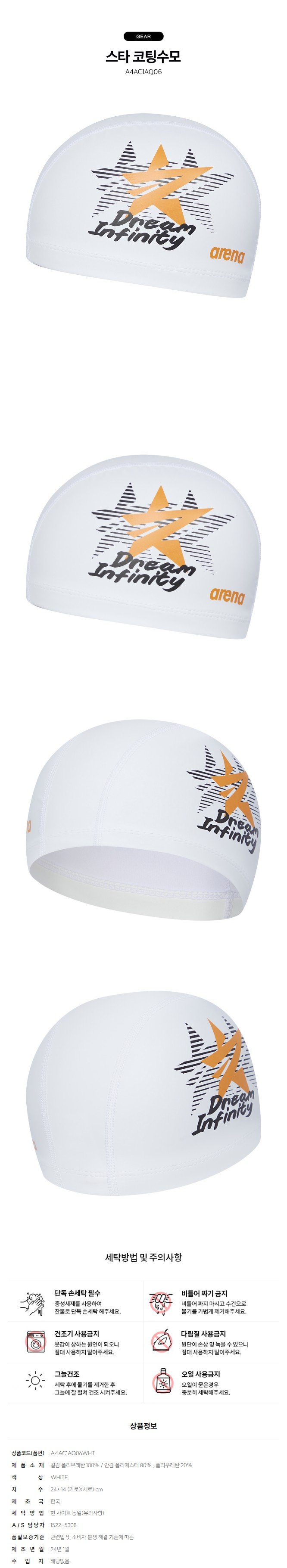 (대전신세계)수영모자 스타 코팅수모 (A4AC1AQ06 A5AC1AQ06WHT)