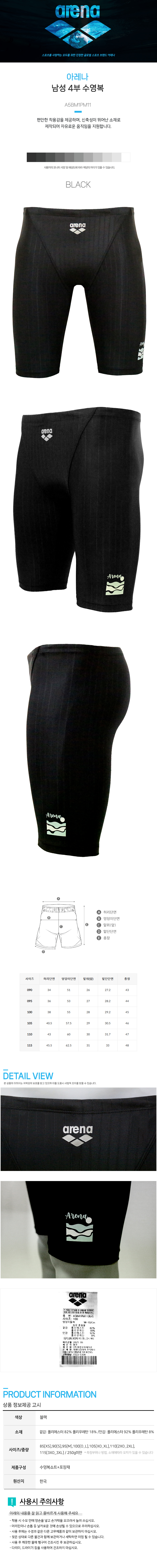 하프클럽/아레나 남성 4부 수영복(A5BM1PM11) 블랙