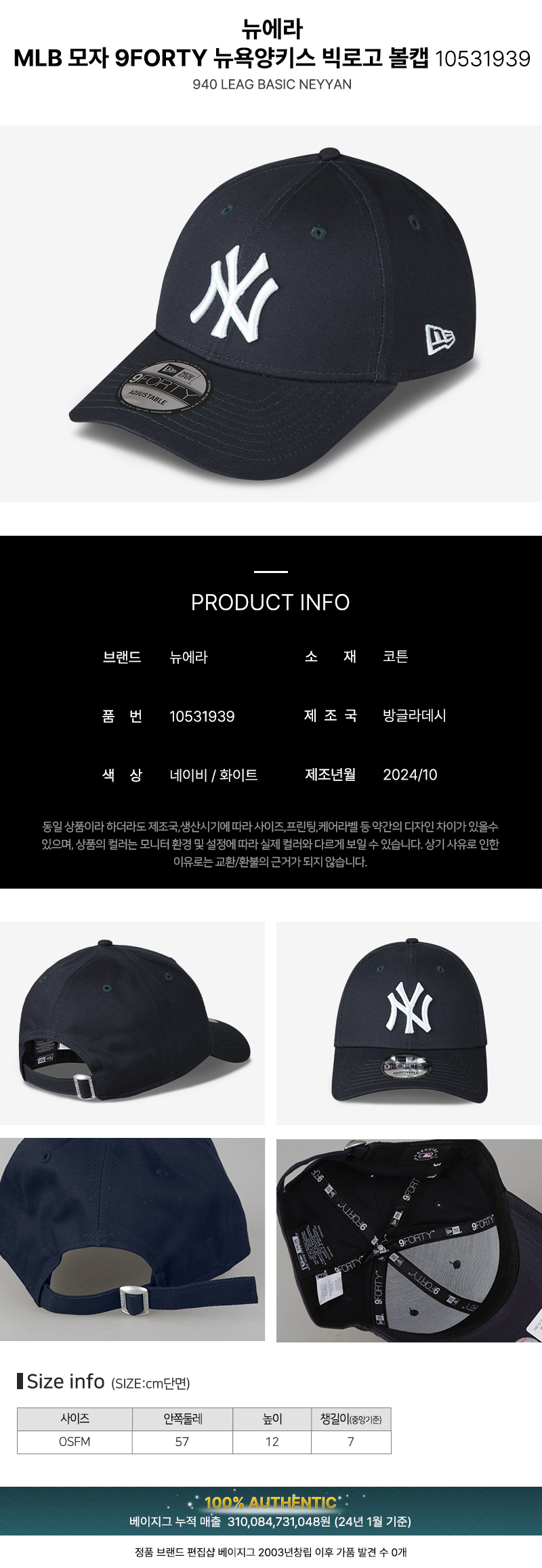 MLB 뉴에라 모자 9FORTY 뉴욕양키스 빅로고 야구 러닝 볼캡 10531939