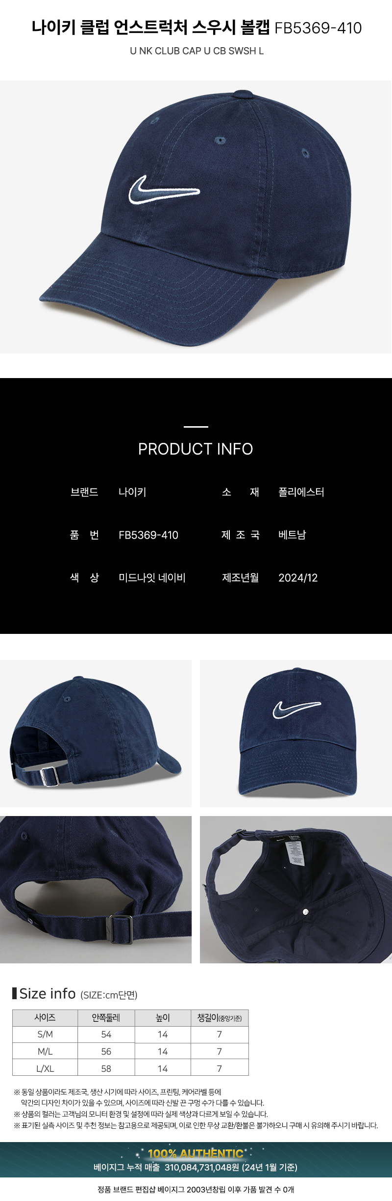 나이키 NIKE 클럽 언스트럭처 빅로고 야구 여행 볼캡 모자 FB5369-410