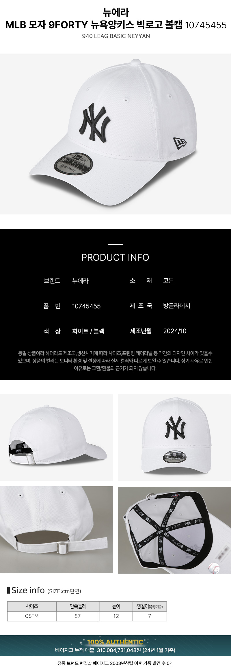 MLB 뉴에라 모자 9FORTY 뉴욕양키스 빅로고 야구 러닝 볼캡 10745455