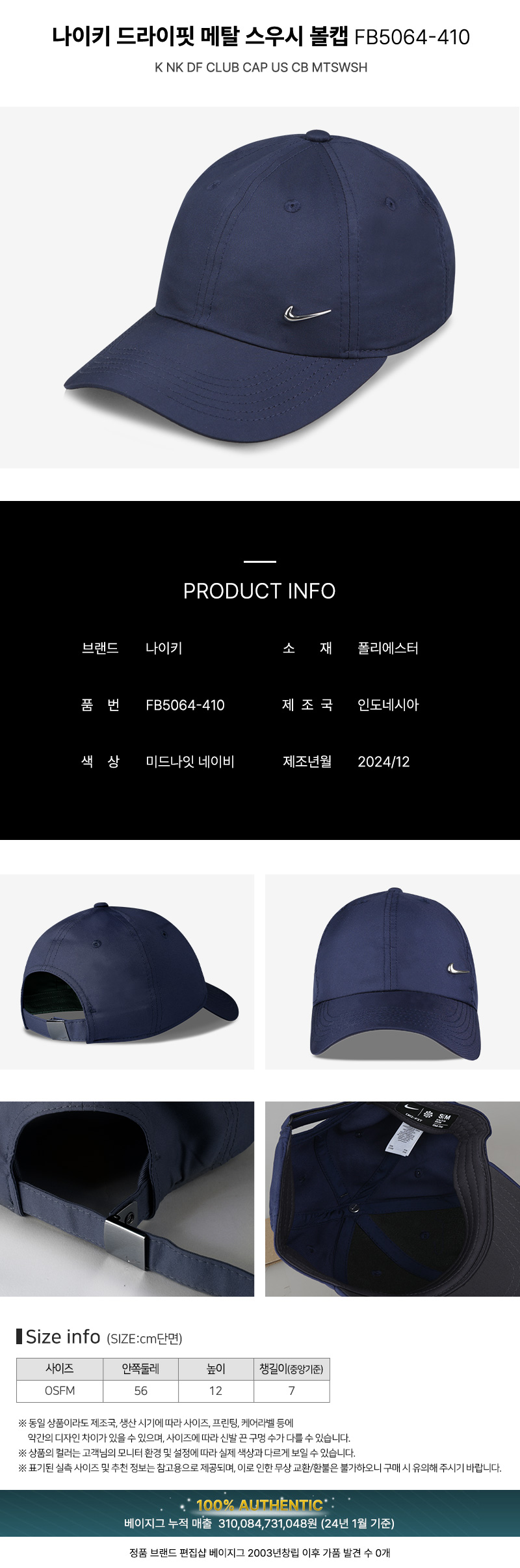 나이키 NIKE 드라이핏 메탈스우시 여성 야구 여행 모자 볼캡 FB5064-410
