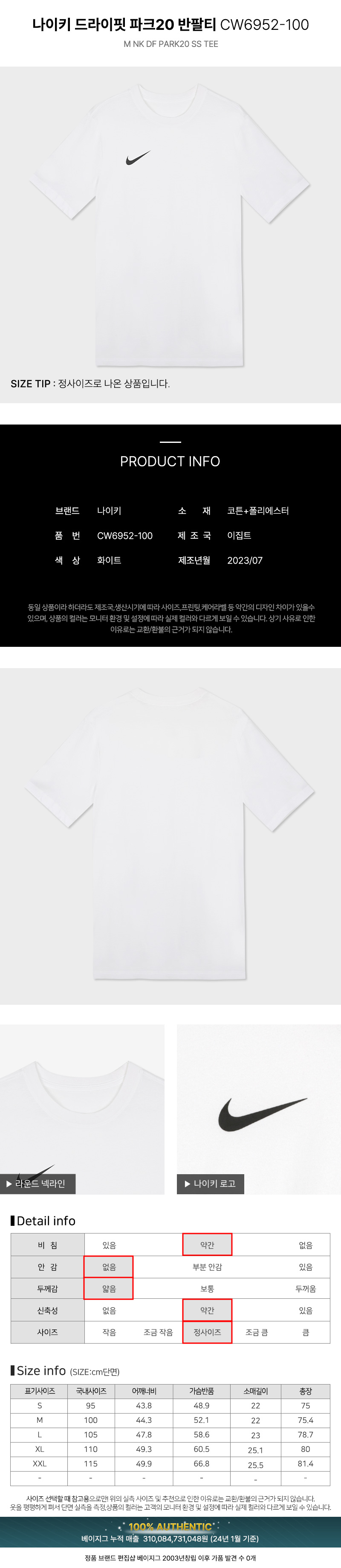 나이키 NIKE 드라이핏 파크20 남자 기본 반팔티 CW6952-100