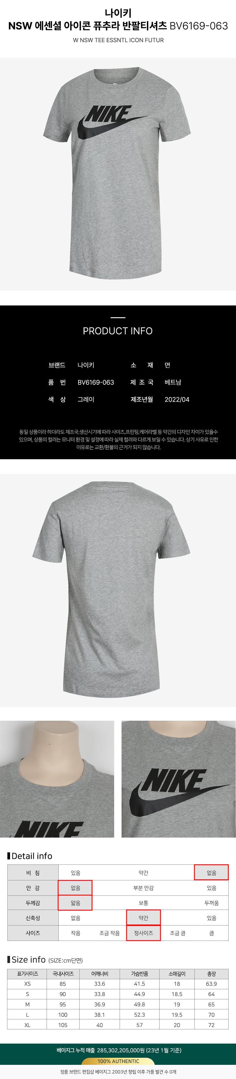 나이키 NIKE NSW 에센셜 아이콘 퓨추라 여성 반팔티셔츠 그레이 BV6169-063