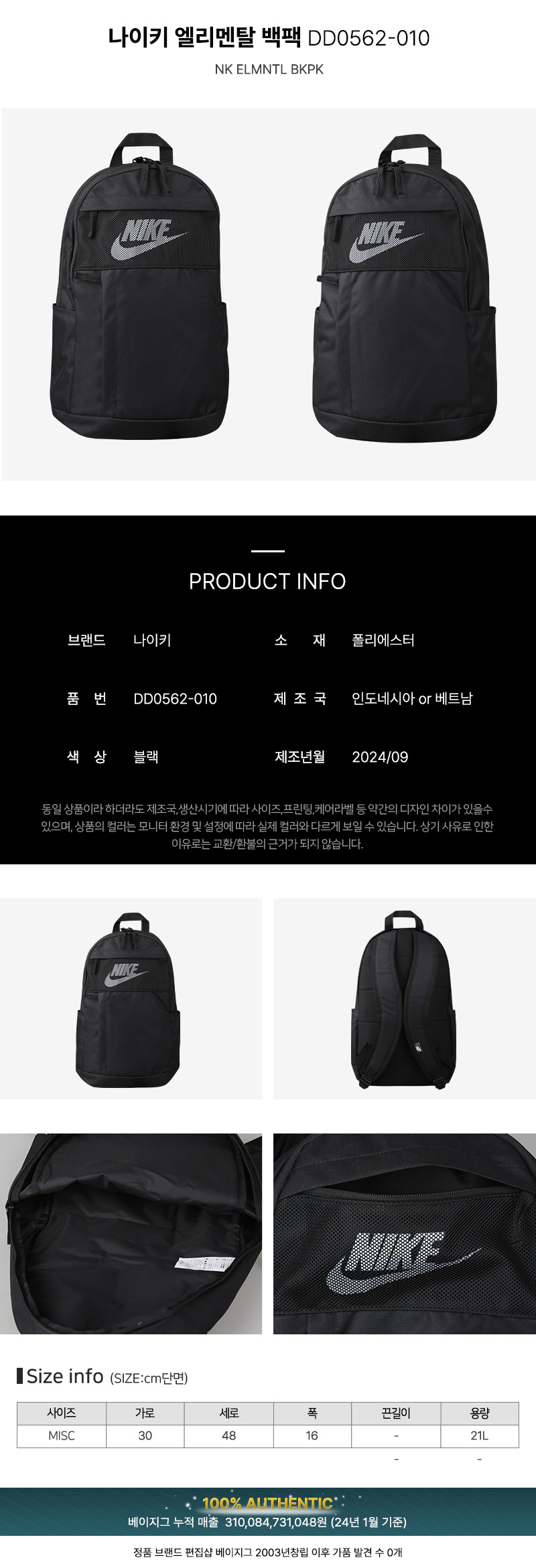 나이키 NIKE 엘리멘탈 학생 백팩 운동 등산 가방 DD0562-010