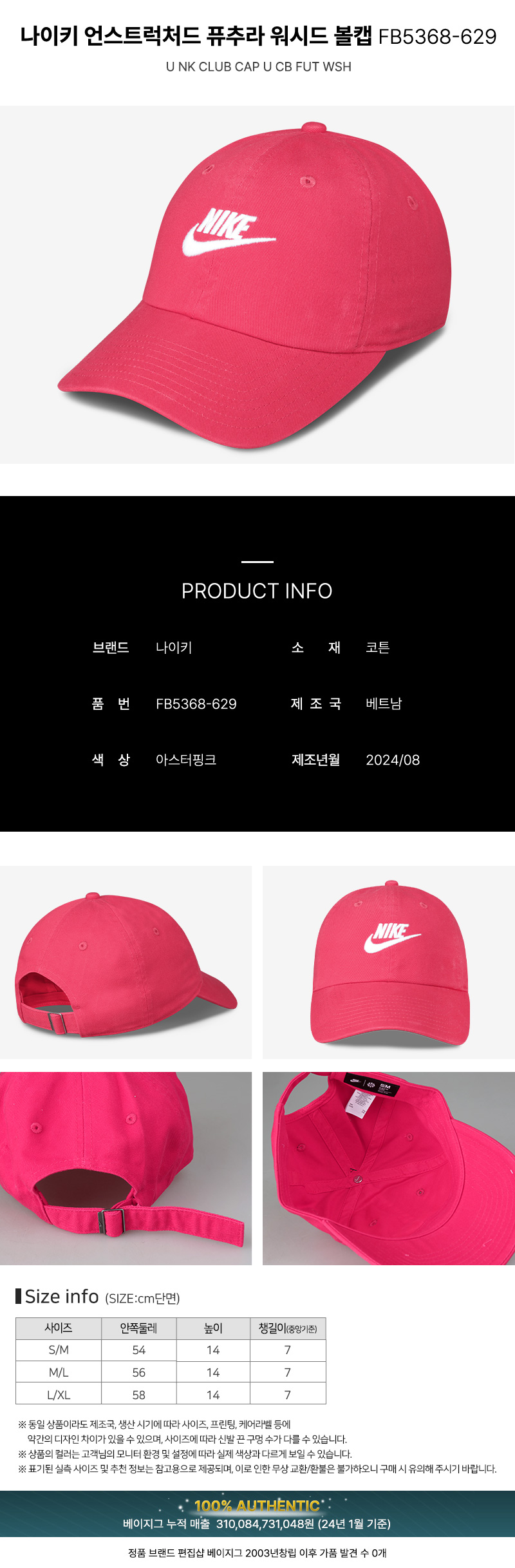 나이키 NIKE 모자 언스트럭처드 퓨추라 워시드 남자 여성 볼캡 에스터 핑크 FB5368-629