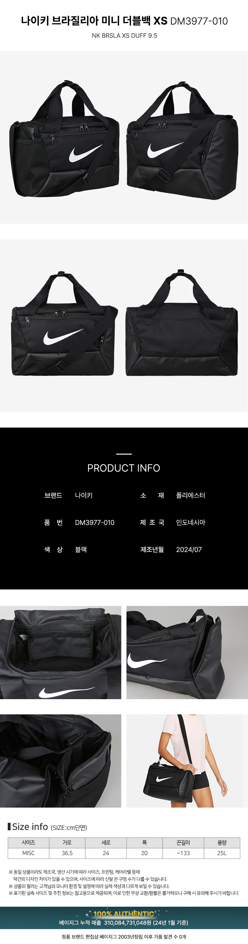 2025 SS나이키 브라질리아 미니 더플백 XS 여행 헬스 캠핑 운동가방 DM3977-010_