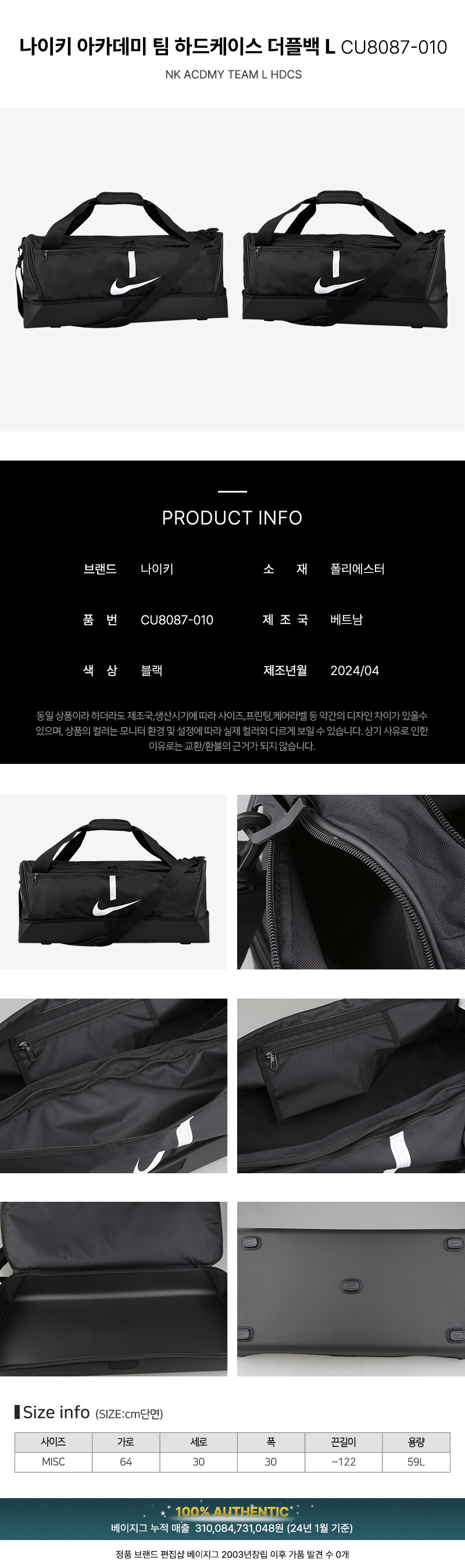 2025 SS나이키 아카데미 팀 하드케이스 더플백 L 여행 헬스 캠핑 운동 가방 CU8087-010