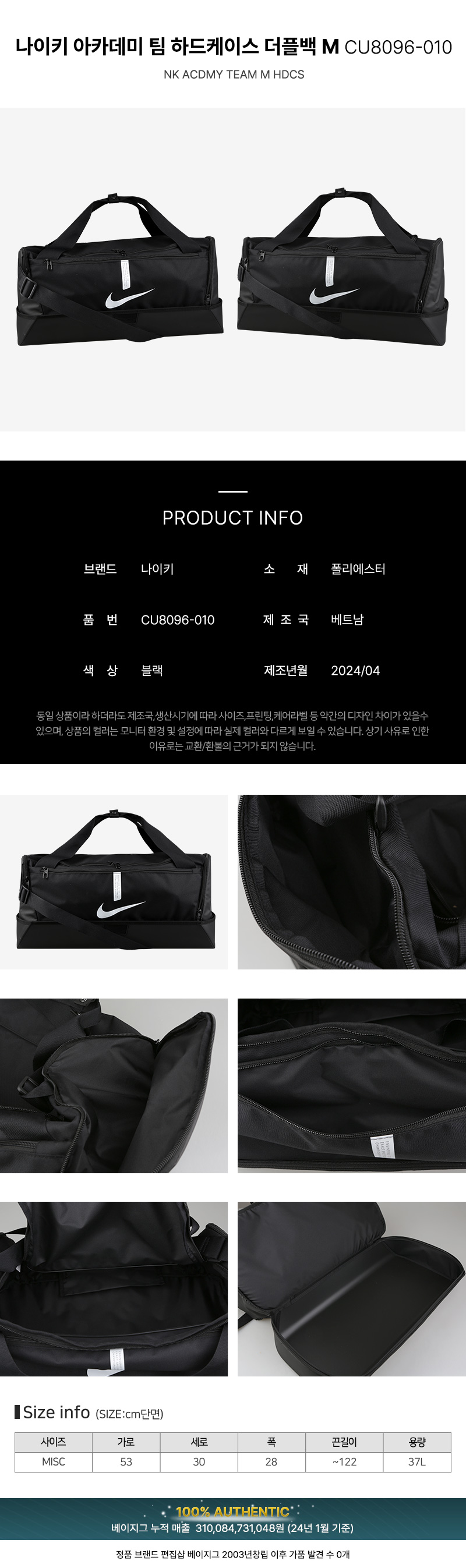 2025 SS나이키 아카데미 팀 하드케이스 더플백 M 여행 헬스 캠핑 운동 가방 CU8096-010
