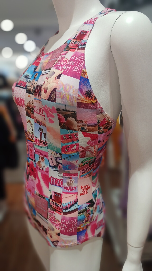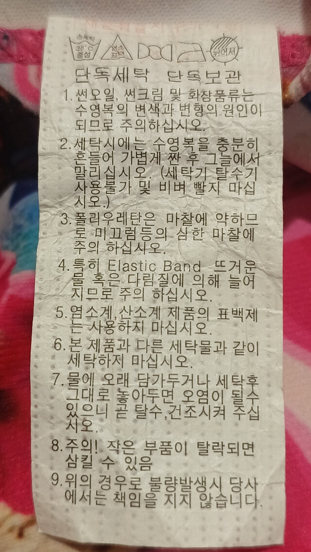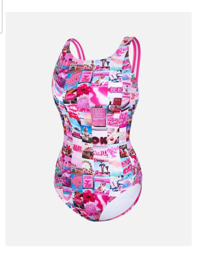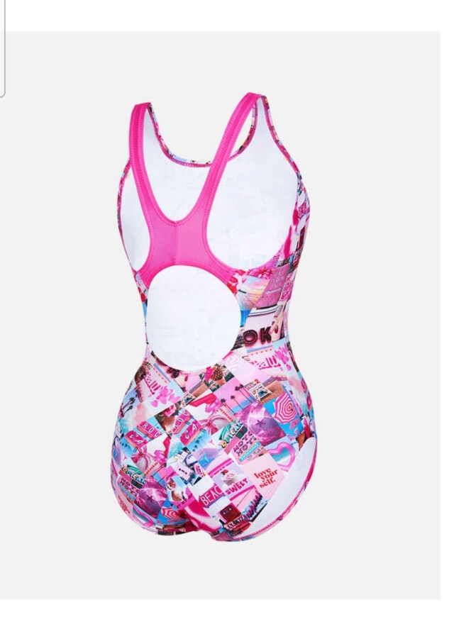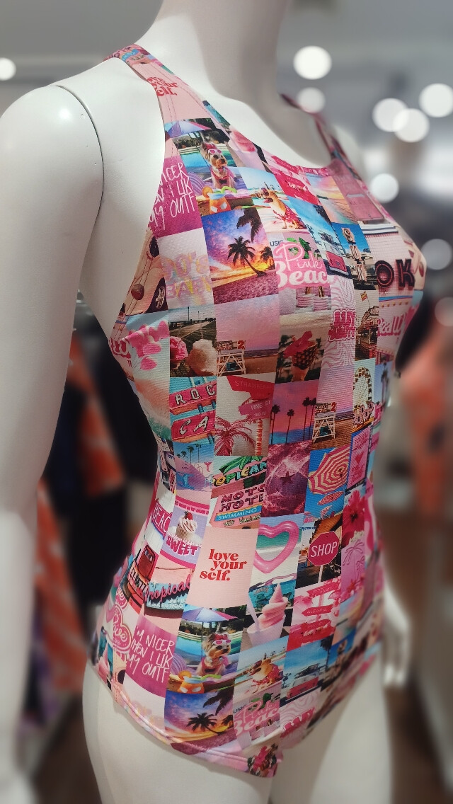 폴리에스터 100% 탄탄한 소재의 수영복으로 화사한 핫 핑크 컬러의 스냅 프린트가 포인트인 원피스 수영복입니다.