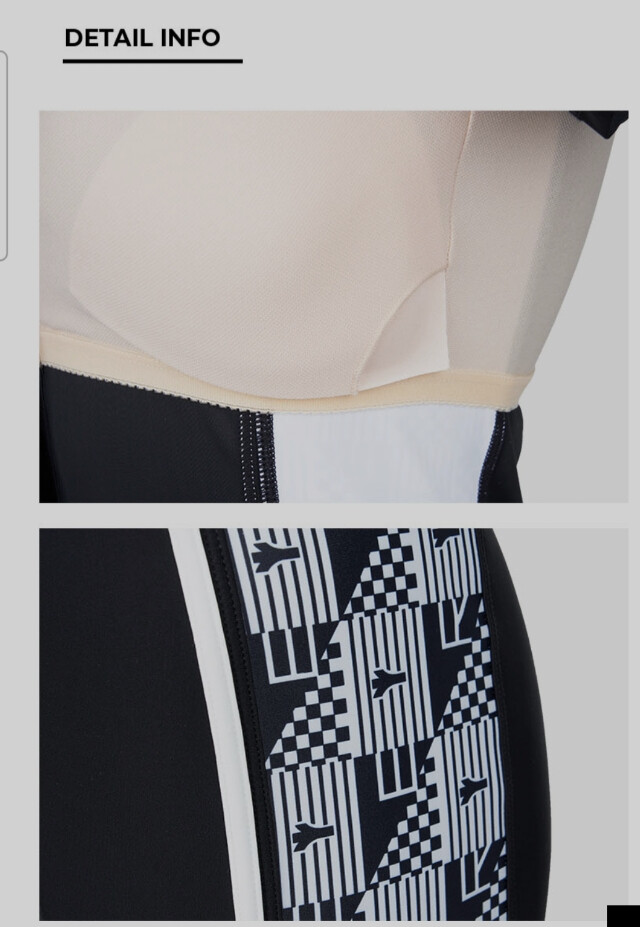일반 수영복에 비해 노출이 적은 디자인과 옆라인 포인트로 날씬해 보이는 전체 패드 내장형 반팔 2부 실내 수영복입니다.