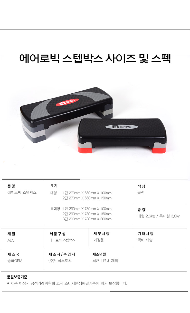 반석스포츠 에어로빅스텝박스 3단높이조절스텝퍼다이어트