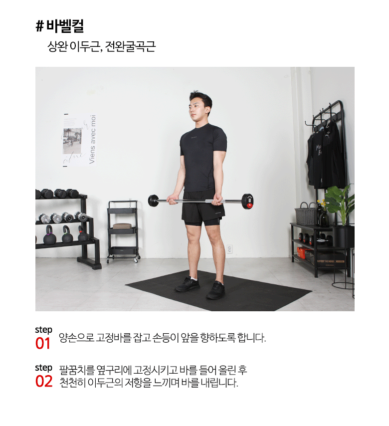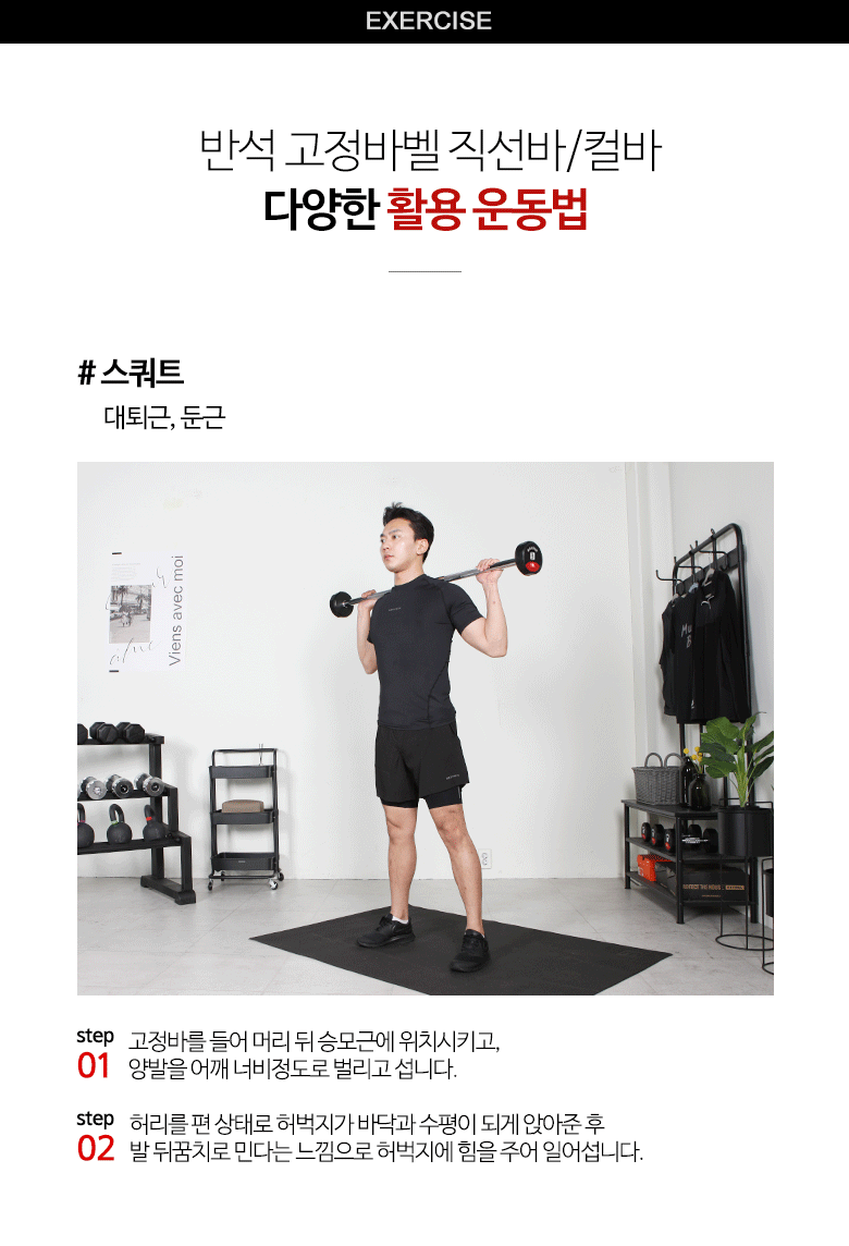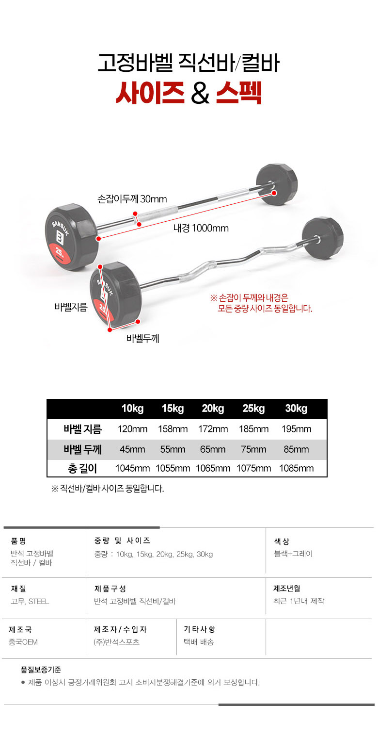 12각 고정바벨 직선바 컬바 고정식 일체형 역기봉 중량 EZ 이지바 15kg