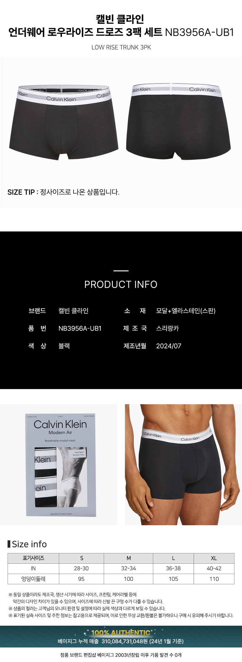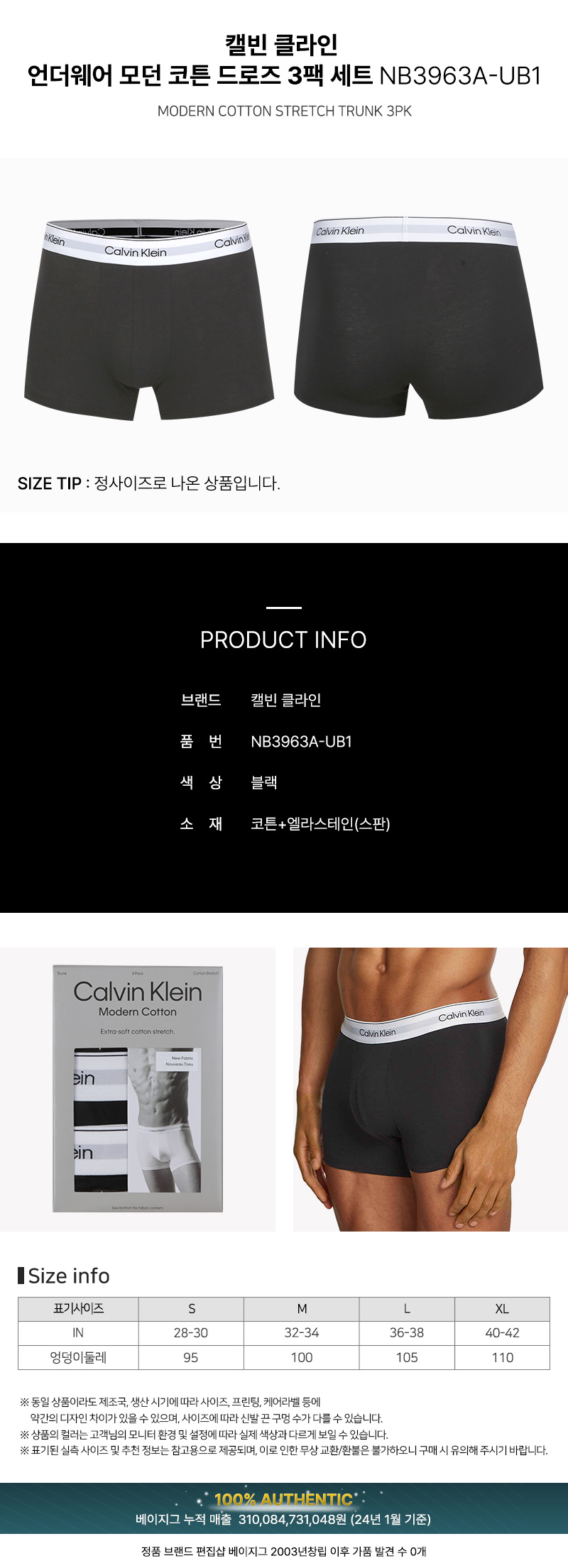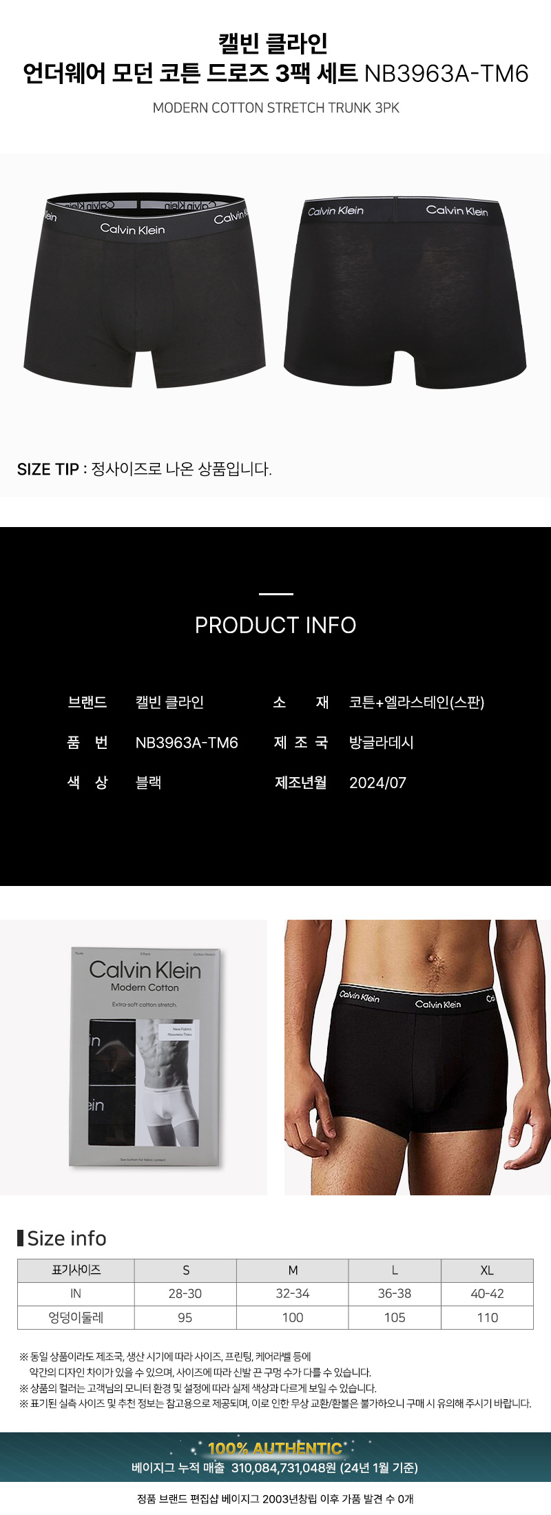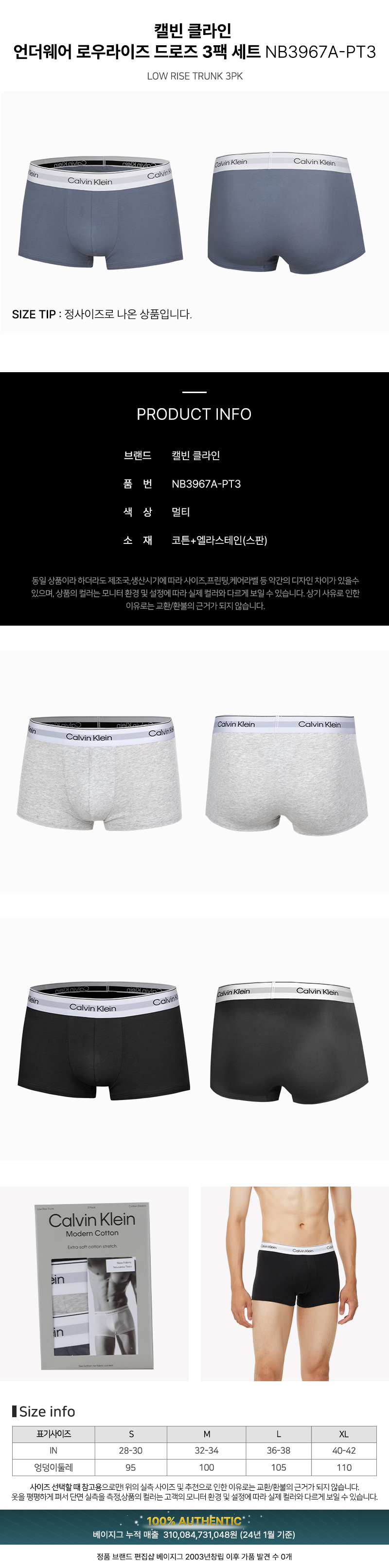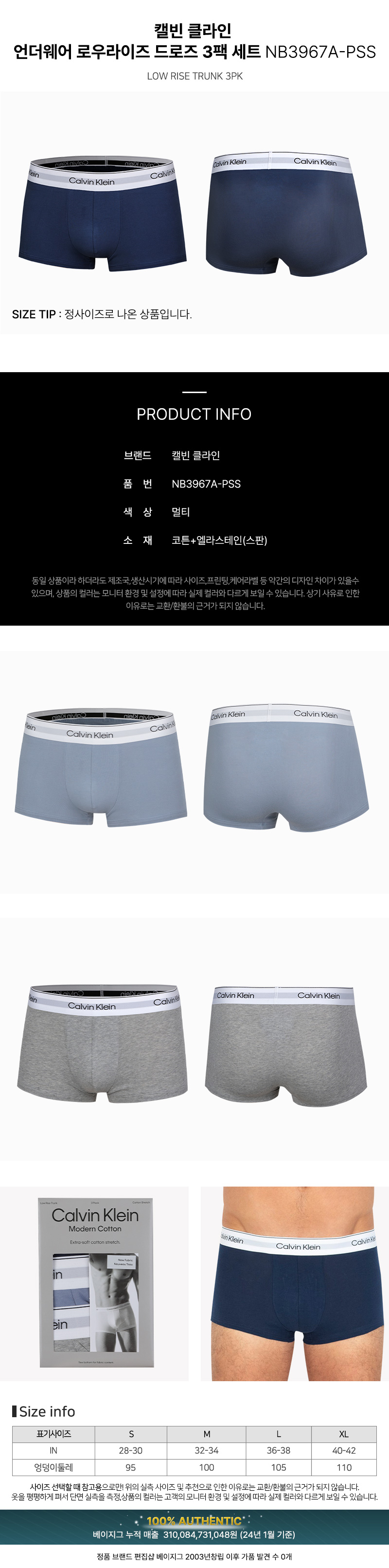 CK 언더웨어 남성 트렁크 드로즈 팬티 3팩세트 24종택1
