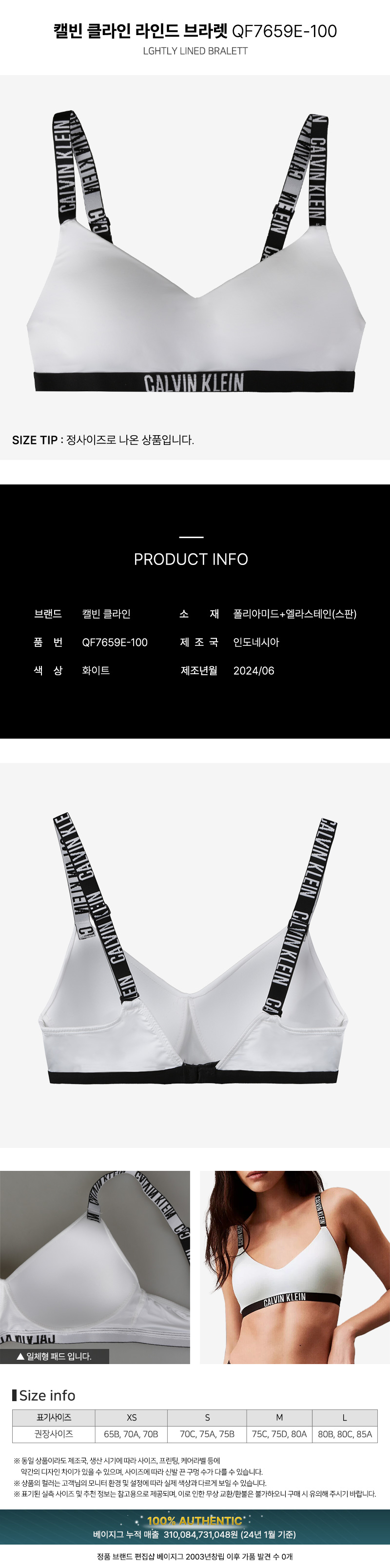 CK 언더웨어 라인드 여성 브라렛 스포츠 브라탑 QF7659E-100