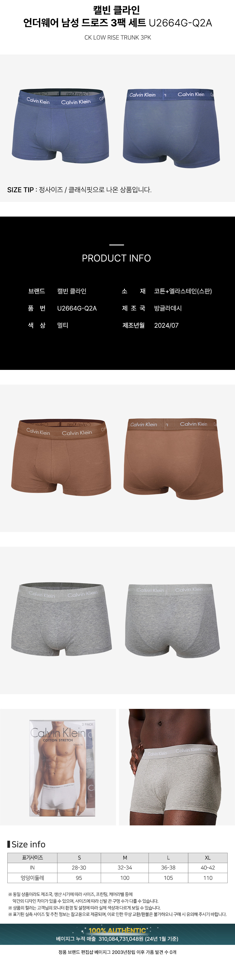 CK 언더웨어 남성 트렁크 남자속옷 드로즈 팬티 3팩세트 U2664G-Q2A