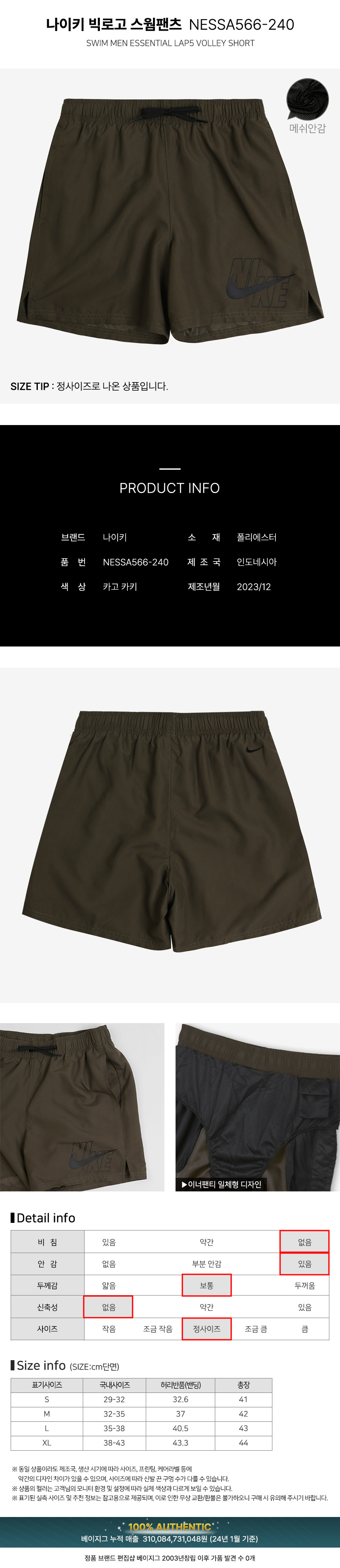 스윔 팬츠 빅로고 보드숏 5인치 수영복 반바지 남자 비치웨어 짐웨어 NESSA566-240