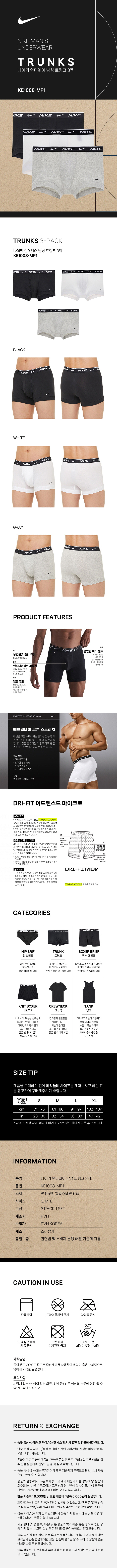 (롯데백화점)남성 언더웨어 코튼 트렁크 3팩 KE1008-MP1