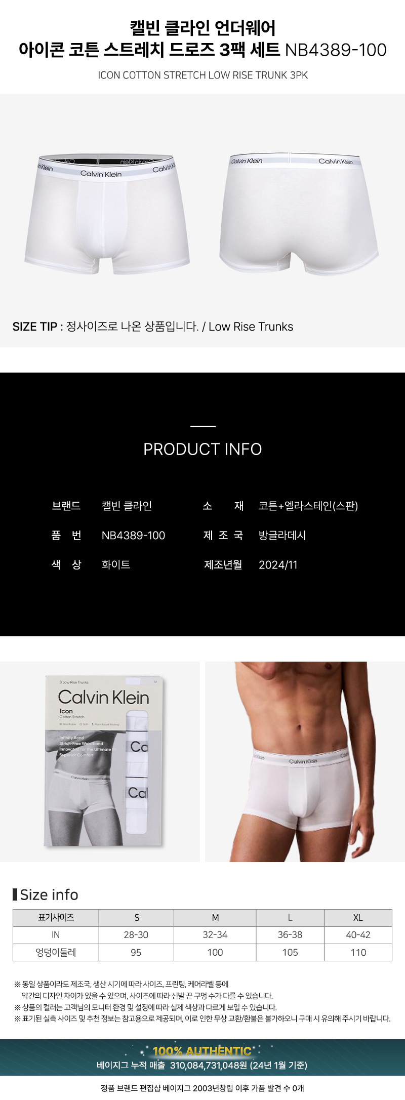 CK 언더웨어 아이콘 코튼 스트레치 남자 드로즈 속옷 3팩 세트 NB4389-100