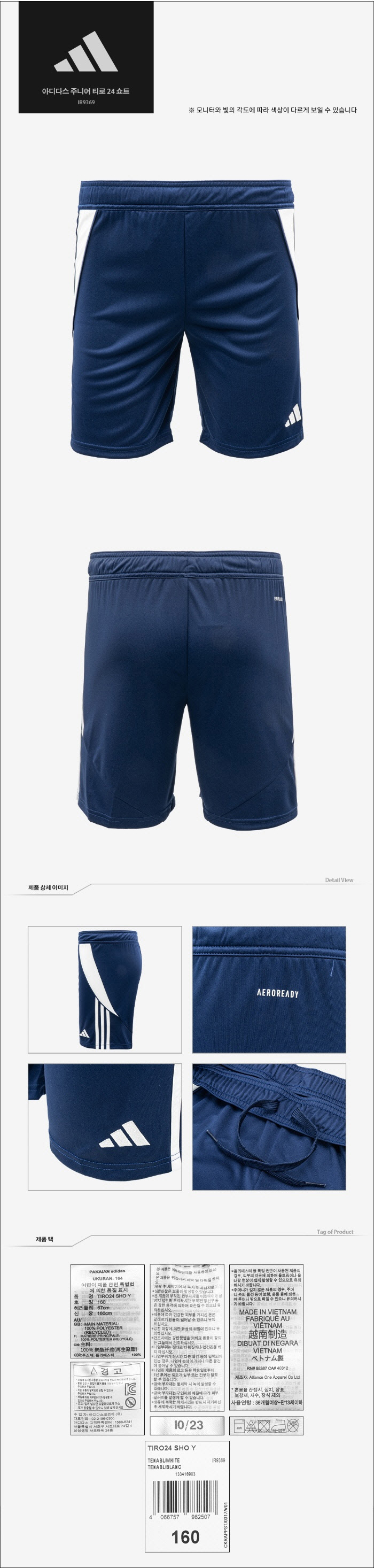 키즈반바지 ZQJ IR9369 유소년 티로24 트레이닝 쇼트