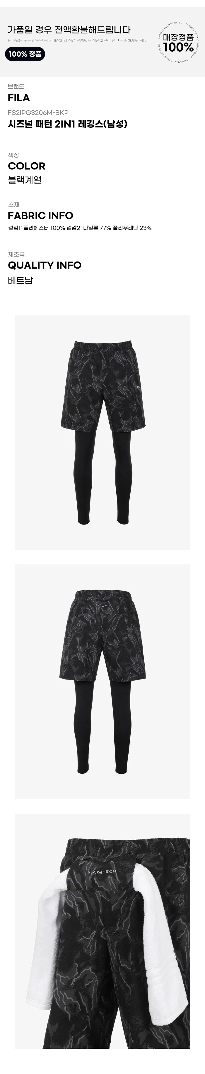 레깅스 GQT FS2IPG3206M-BKP 시즈널 패턴 2in1 레깅스남성)