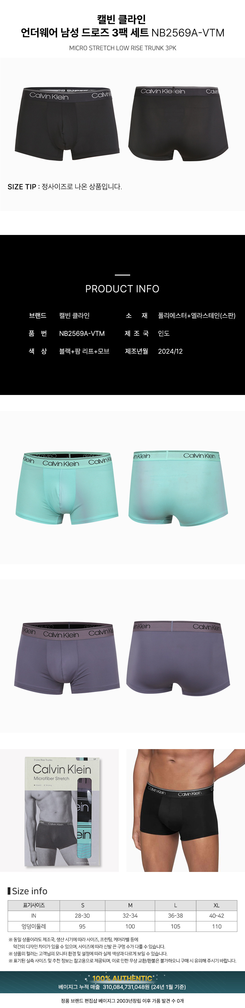 CK 언더웨어 마이크로 스트레치 남자 드로즈 사각팬티 3매 세트 NB2569A-VTM