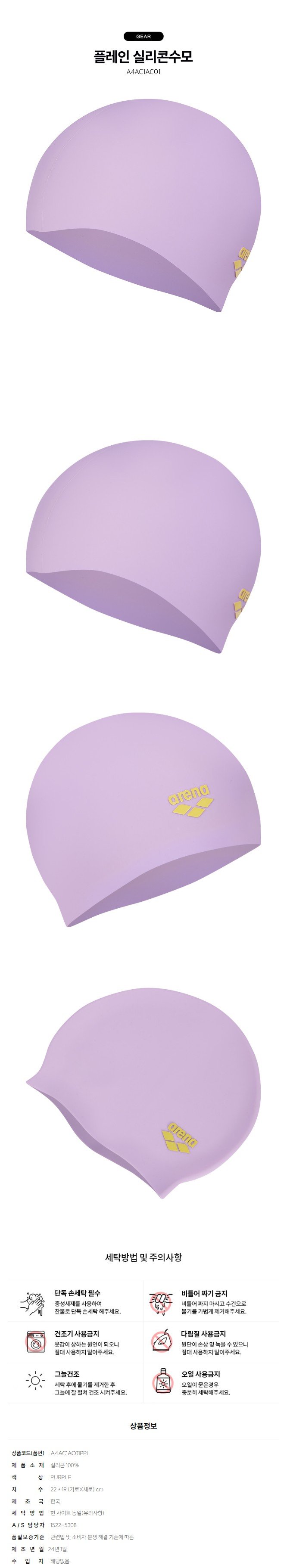 (대전신세계)수영모자 플레인 실리콘수모 (A4AC1AC01 A5AC1AC01PPL)