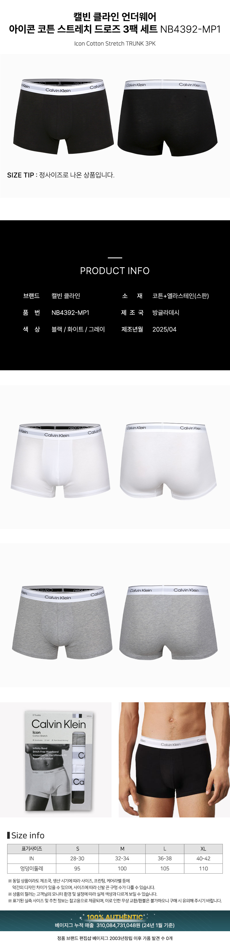CK 언더웨어 아이콘 코튼 스트레치 남자 드로즈 속옷 3팩 세트 NB4392-MP1