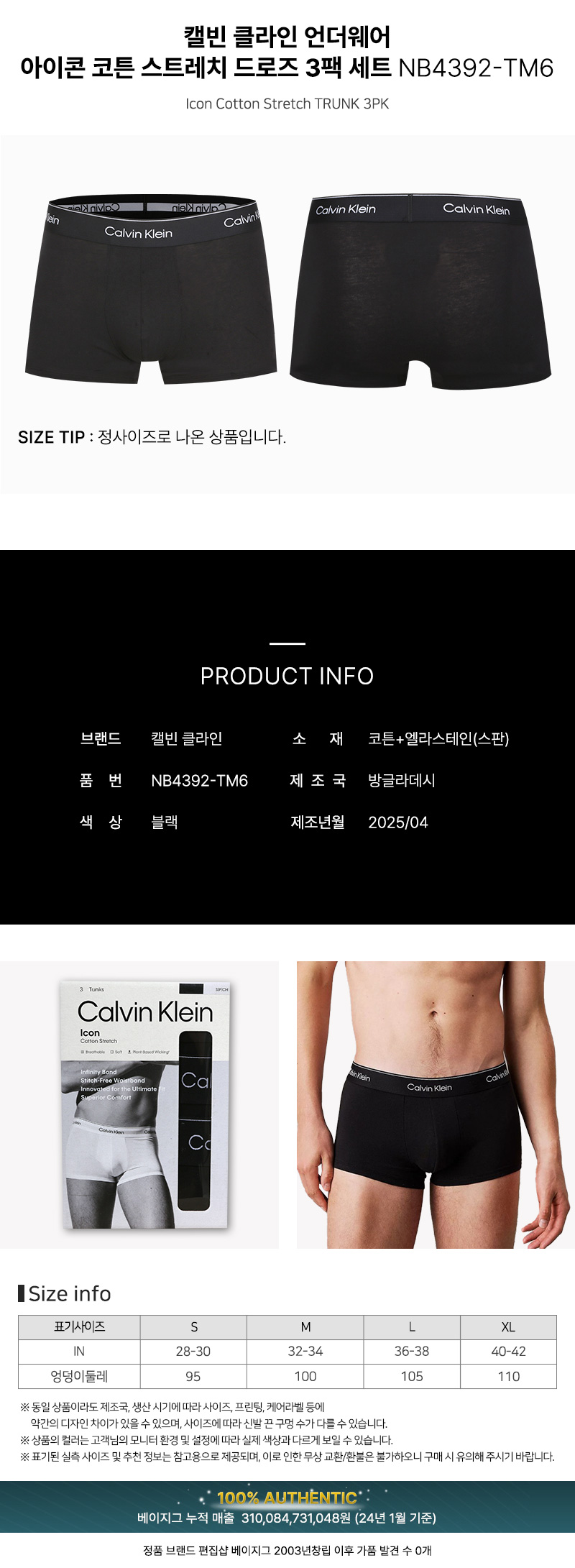 CK 언더웨어 아이콘 코튼 스트레치 남자 드로즈 속옷 3팩 세트 NB4392-TM6