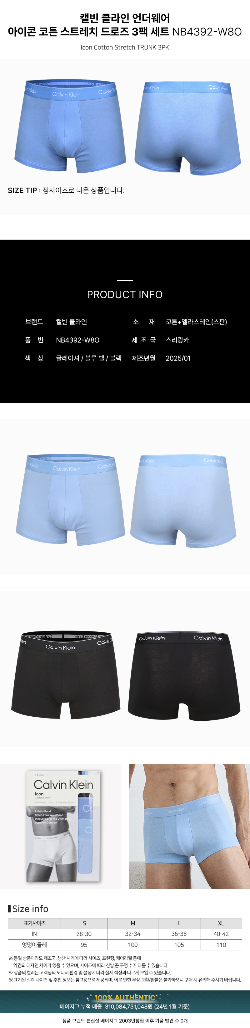 CK 언더웨어 아이콘 코튼 스트레치 남자 드로즈 속옷 3팩 세트 NB4392-W8O