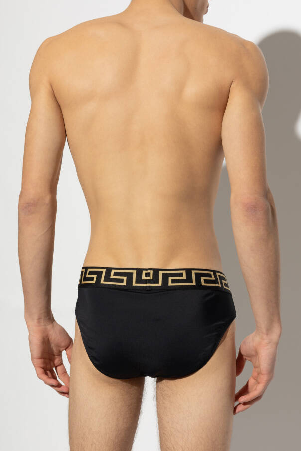 " 베르사체 ABU01025 A232185 A80G 그리카 보더 스윔 브리프 남성 반바지 "