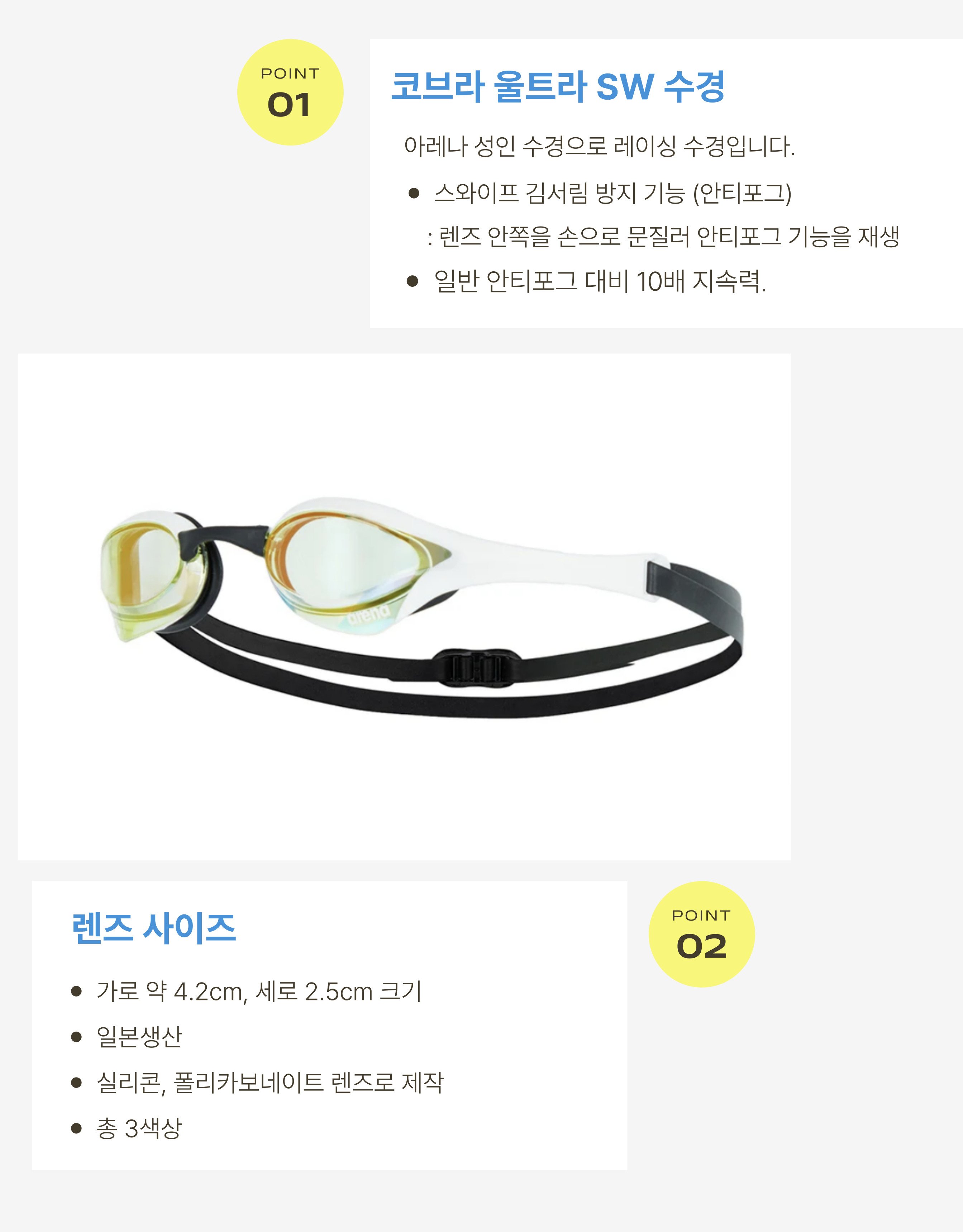 아레나 COBRA ULTRA SWIPE 레이싱 미러수경 WHT