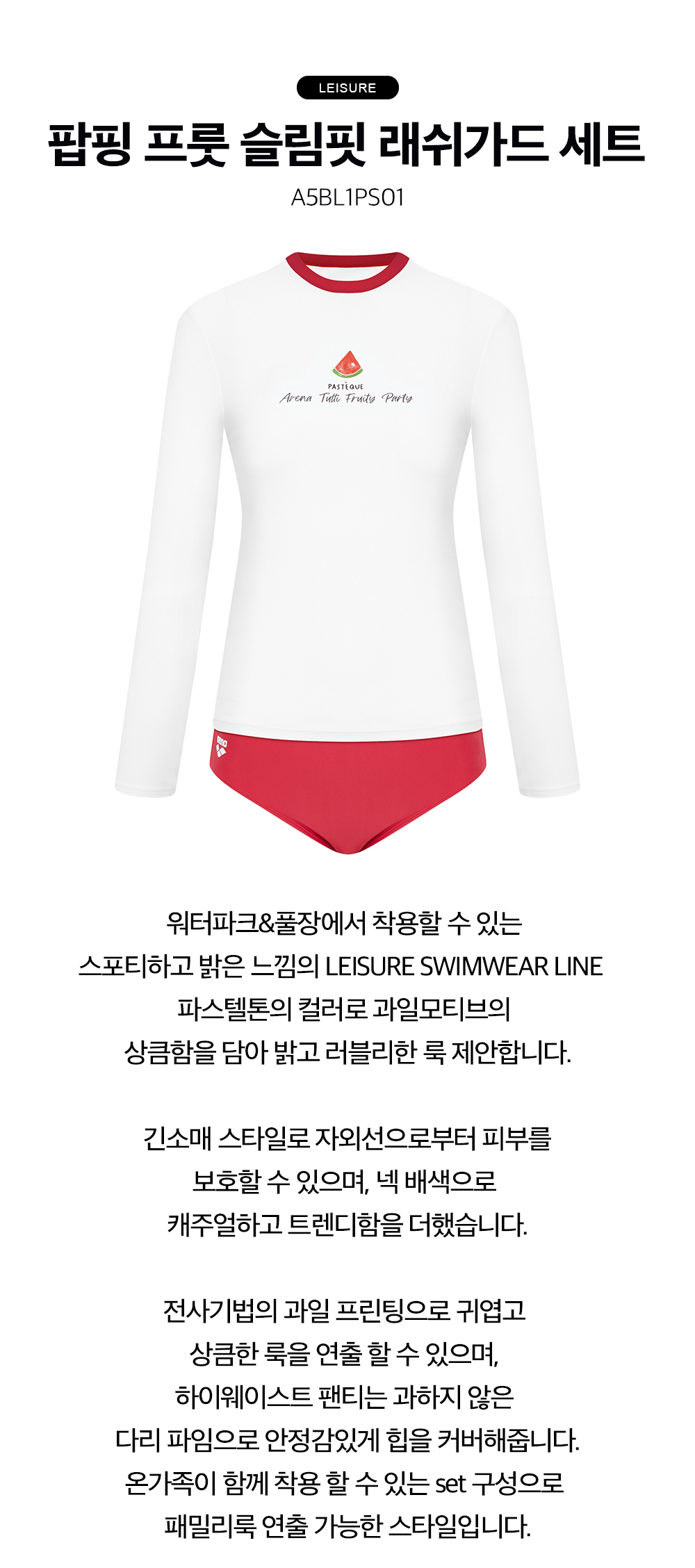 아레나공식팝핑 프룻 슬림핏 래쉬가드 세트 A5BL1PS01RED