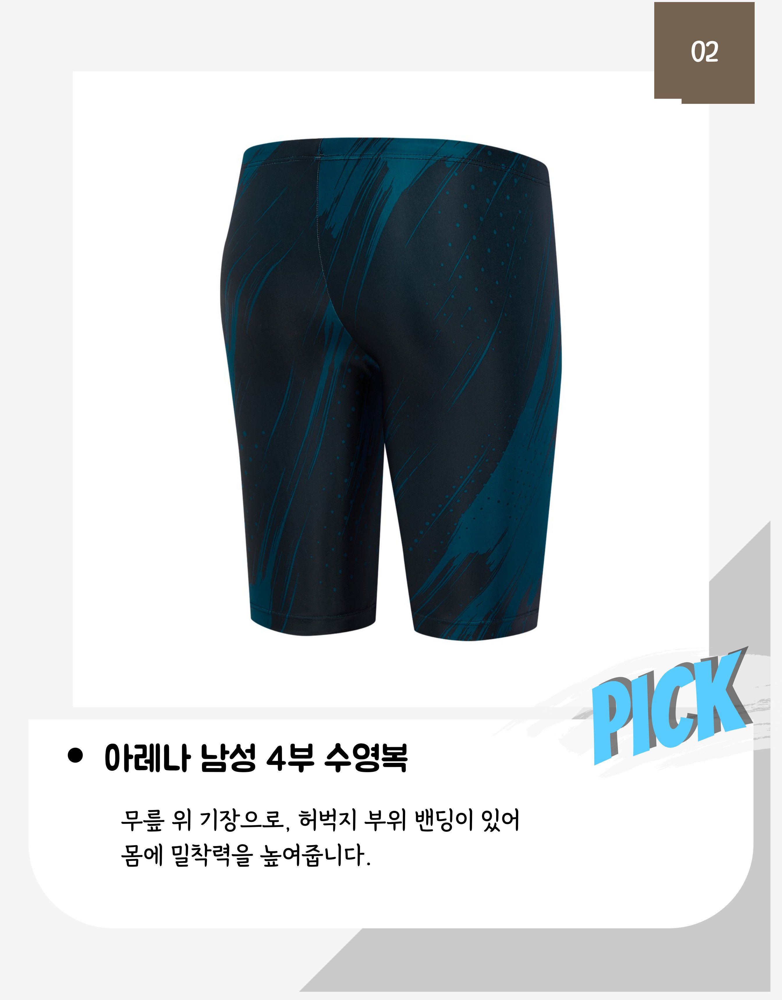 아레나 남성 4부 실내 수영복 A5SM1MD12 DGN