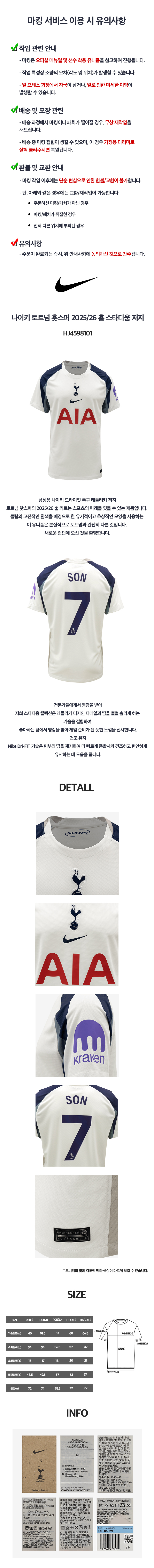 (현대Hmall)손흥민 네임셋 무료 마킹 나이키 토트넘 홋스퍼 2025/26 홈 스타디움 저지(HJ4598-101)