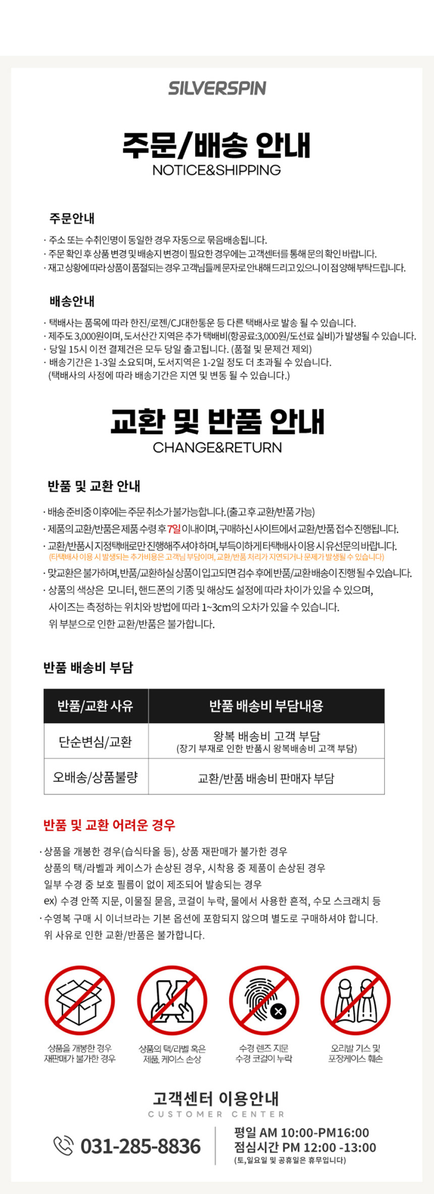 실버스핀은 100% 정품만을 취급합니다.