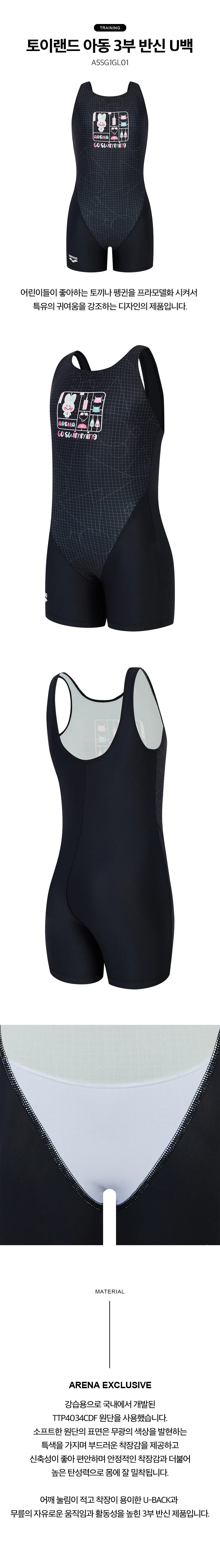 여아 수영복 토이랜드 아동 3부 반신 U백 블랙 A5SG1GL01