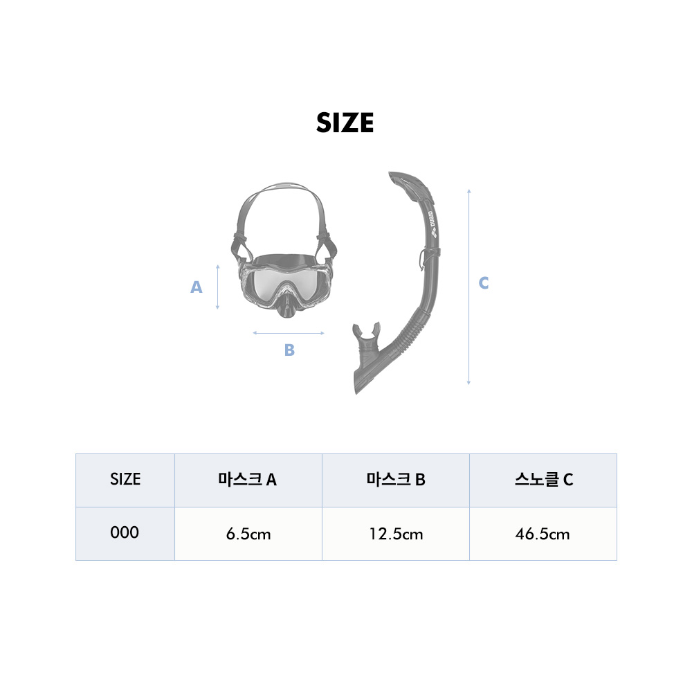 [마스크] 6.5 x 12.5(cm) [스노클] 46.5(cm)