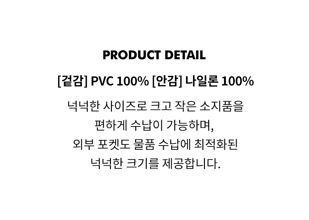 [겉감] PVC 100% [안감] 나일론 100% [배색] 메쉬폴리 38%/나일론 62%