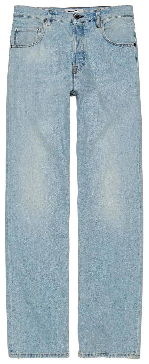 미우미우 백포켓 로고 워시드 데님 팬츠 GWP503 14QU F0013 여성 청바지