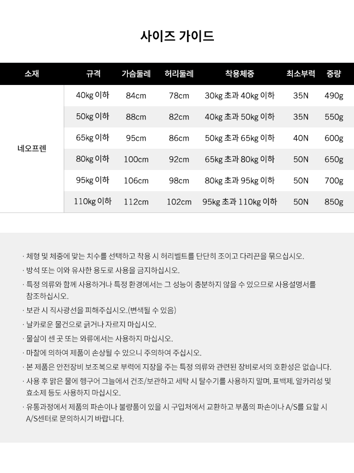가슴둘레 : 84~112(cm) / 허리둘레 : 78~102(cm)