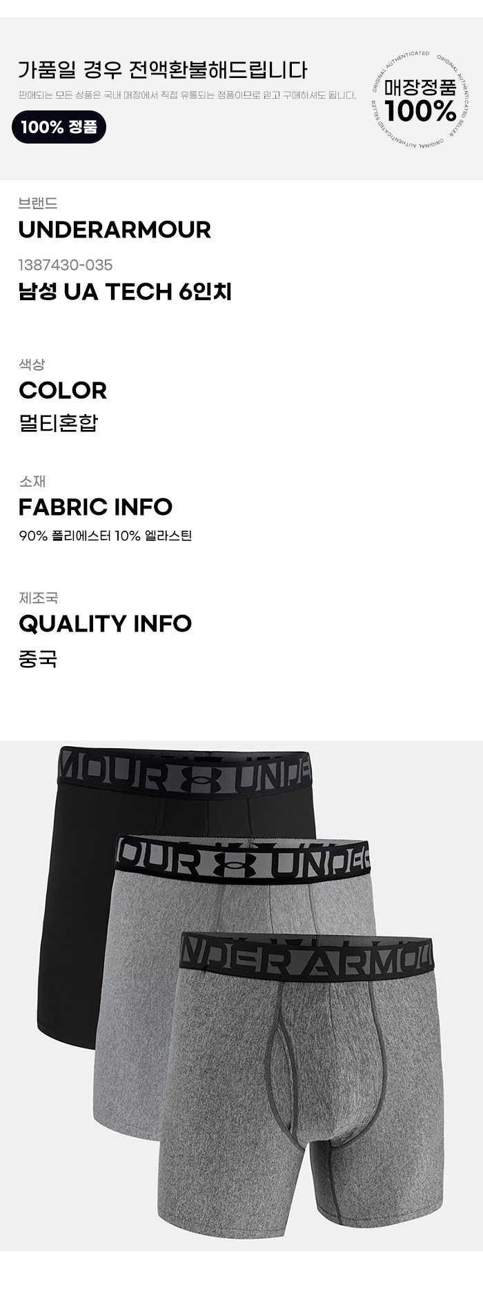 팬티 BQK 1387430-035 남성 UA Tech 6인치