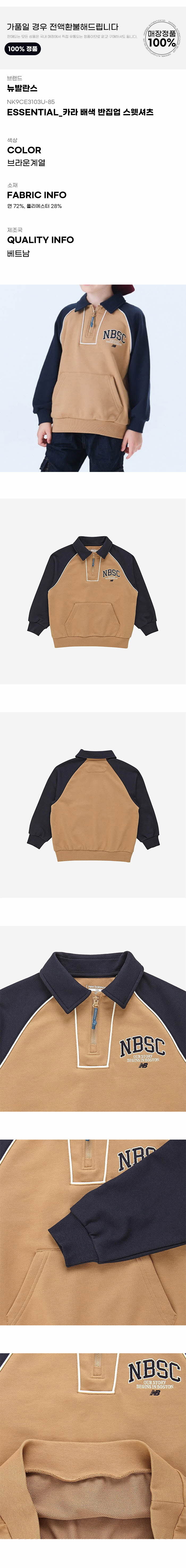 키즈긴팔티 PQC NK9CE3103U-85 ESSENTIAL 카라 배색 반집업 스