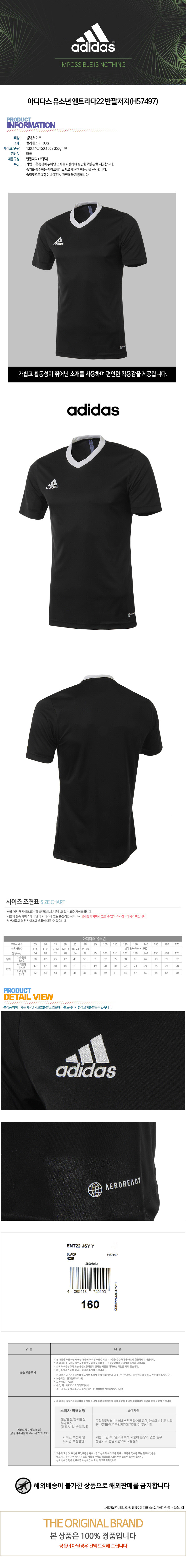 키즈반팔티 VQB H57497 유소년 엔트라다22 반팔저지 H57497