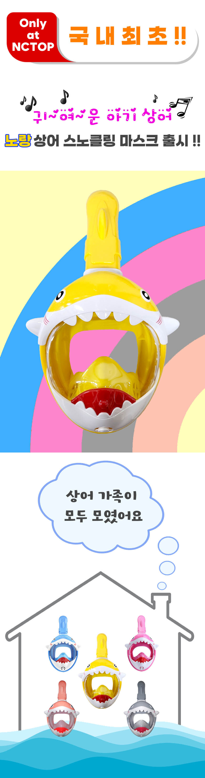 어린이용스노클링마스크 아동용 상어스노클링 물놀이 수영 국내최초 노랑 아기상어 마스크 출시