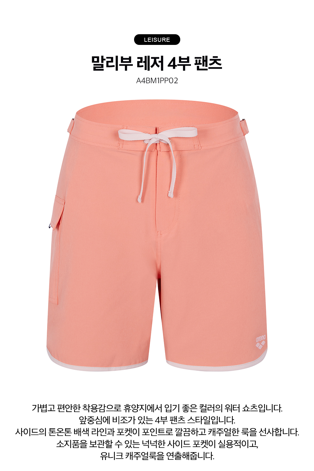 아레나공식말리부 레저 4부 팬츠 A4BM1PP02COR
